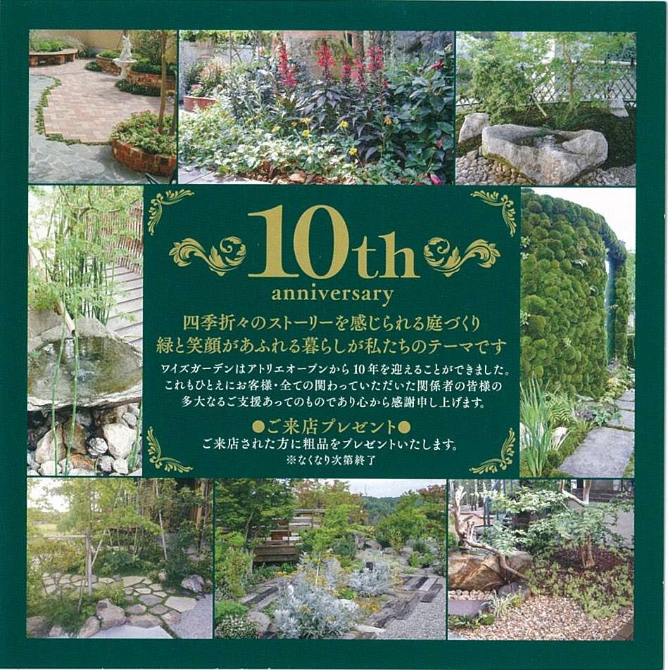 9月5日 アトリエ オープンから10周年を迎えることができました! 今までご支援・応援してくださった皆様のおかげです。 本当に 心から感謝申し上げます。 『ありがとうございます』 10年一昔といいますが、これからも新しいことにチャレンジしながら、皆さまに喜んで頂けるように、頑張っていきますので 変わらずのご支援と応援をよろしくお願いいたします!