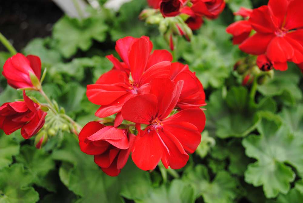 濃い赤の大輪が全体的に丸く咲いてくれます