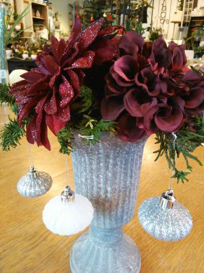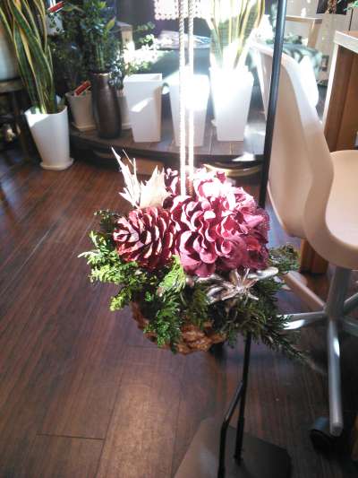 赤い花が残っていたのでシンプルな飾り物を作ってみました