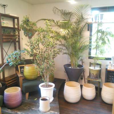 お店には今、鉢があちこちに置いてあるので読書スペースが狭くなっておりまして...