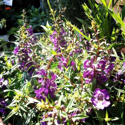写真はアンゲロニア セレニータ コンパクトですが半日陰でも繁々になります