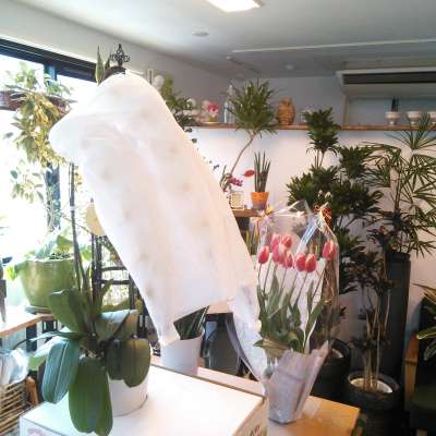 右のチューリップは大手ハウスメーカーさんの完工お祝いでご指名 いただいており季節のお花が好評のようです。