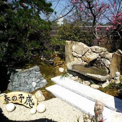 さて、こちらは奥本造園さん恒例のお庭。今回は「春の予感」です。