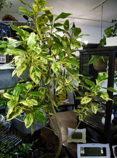 ゴムの木の中でも、小型の葉がカワイイ! ここ数年人気急上昇の観葉植物です。 こちらはその中でも、斑入り「バリエガータ」ですねっ