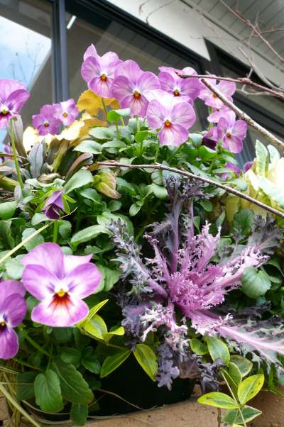 ビオラに葉牡丹