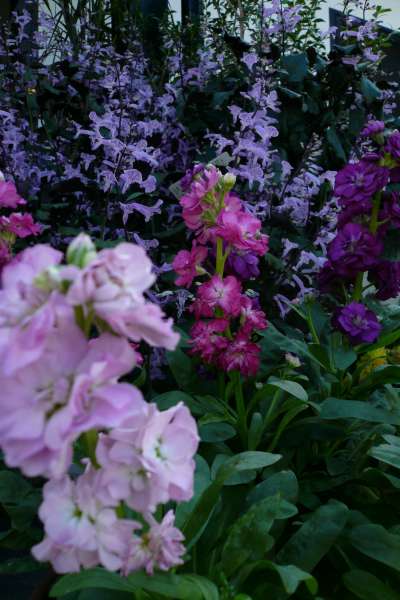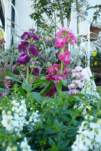 茎が太く丈夫なストックは、寄せ植えや花壇など