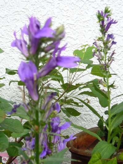 地位も名誉も・・そして美貌も兼ね備えた女性(ひと) その方をイメージする花が この『サワギキョウ〜宿根ロベリア』の花だ・・・ys 紫の花、切れた葉。何といっても、立ち姿(花穂)がその人を連想させるに至っている。