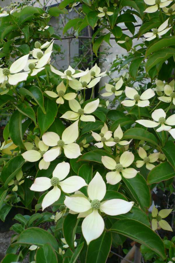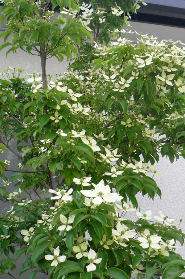 昨年は、花数の少なかった常緑ヤマボウシに 今年は沢山の花が咲きました。まだ、咲き始めですが後一週間も すれば白いドレスのように樹木全体が花に!