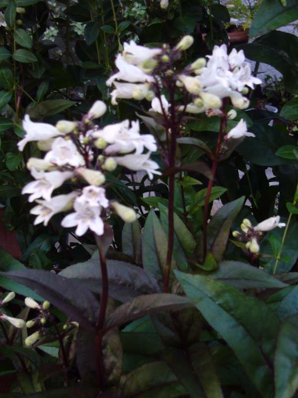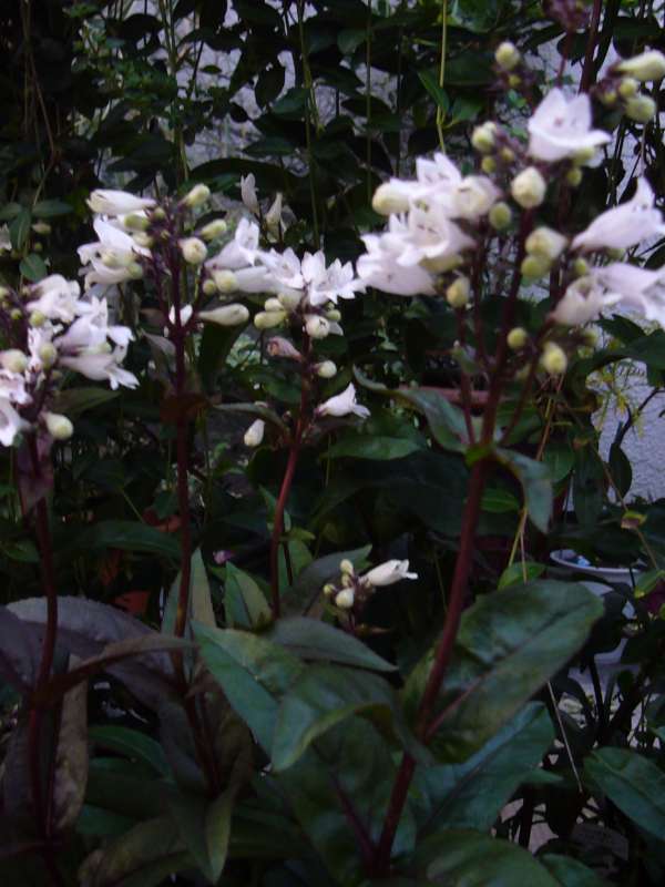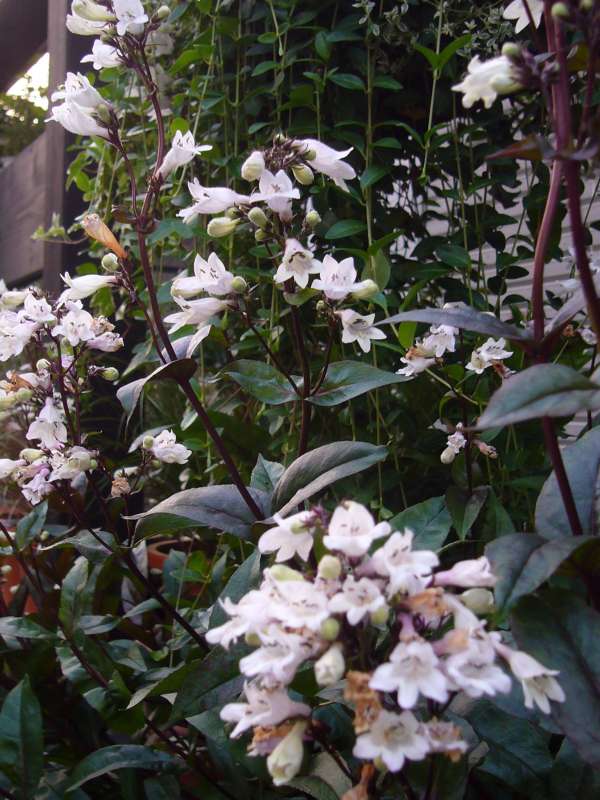 ゴマノハグサ科の多年草で、銅葉色の葉からぐっと伸びた茎に、 淡ーーーーい 白ピンクの花を咲かせます。