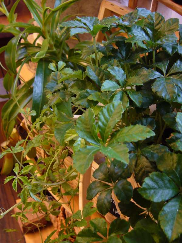 こちらも 甘ーーーーーい名前の『シュガーバイン』 葉っぱの裏に甘い匂いの元が・・・ 女性に圧倒的人気のグリーンです。 やっぱり、女性は甘いものに弱いのかな?(笑 育て方の説明は必要ないかも・・・ が、あえて言うなら。 場所移動を嫌う様です(私の経験ですが!) かわいい5枚の葉っぱが人気でしかも伸びる伸びる。