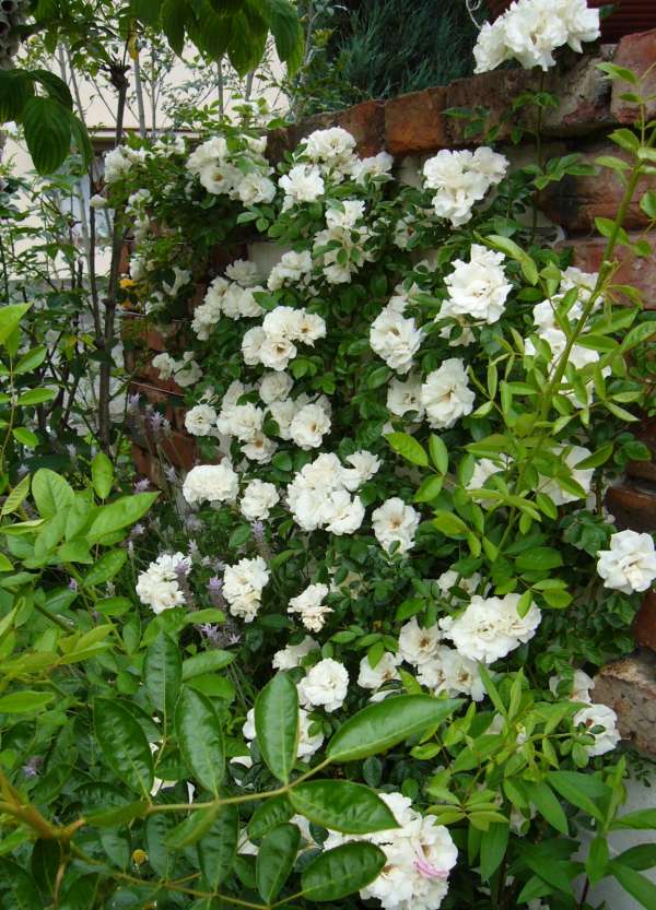 上の写真の『白モッコウバラ』は、煉瓦の壁にステンレスワイヤーを張り巡らして、壁一面に花を付けさせる計画でした・・(笑 まんまと、バラたちがこの作戦に乗ってくれた(笑