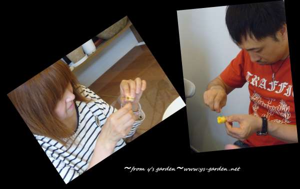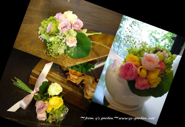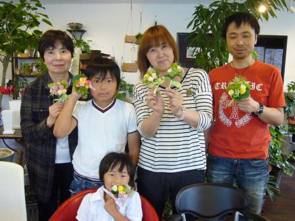家族みんなで、プリザのコサージュを創りました。 花色選びから、みんな真剣です・・ そして、それぞれに個性が。 助け合いながら、お互いの感性に感化されて。