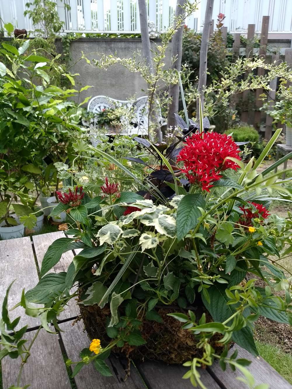 今注目の『ギャザリング』テクニックを利用した夏から秋まで楽しめるバスケットを作りました!種類は何と9種類の盛りだくさんバスケット『ギャザリング』ならではの仕上がりこれからの成長を楽しみに育てたいです・・・・ひよっとして、初冬まで咲いているのでは?と思っています・・(笑ys