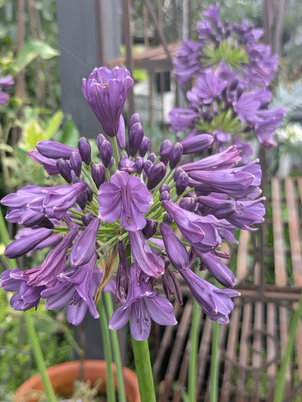 いつも ワイズガーデンの夏休み中に 咲き始めるから 中々皆さんに会えない花ですが 夏の暑さにも冬の寒さにも 強く お手入れ要らずの 優等生的な庭花ですが 写真の種類は まだまだレアな濃いパープルの アガパンサスです 花の高さは地上から1メートル位 気品のある色と姿が 庭をワンランクアップさせてくれます 去年は少しだけでしたが 秋オープンには 苗をご用意できます! 来年を楽しみに植えてみませんか? 下の画像は 去年 株を購入された方からの写真です